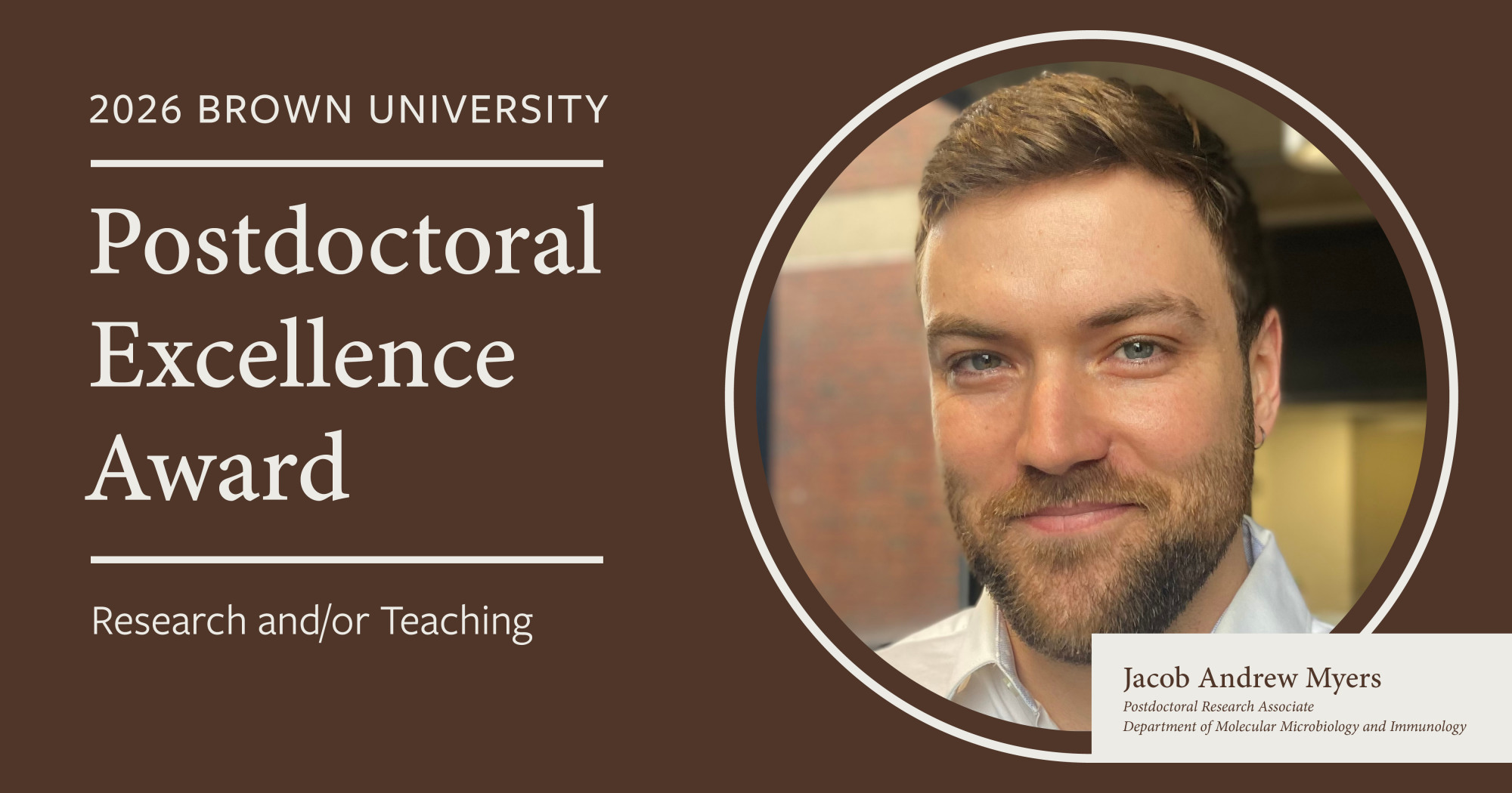 A committee of faculty members reviewed nominations and selected the award recipients from 47 nominations submitted by members of the Brown community. The selection committee was very impressed by the caliber and contributions of those nominated. The recipients will be honored with a ceremony with Vice President for Research Greg Hirth during the 2026 Brown Postdoctoral Research Day poster session on Monday, March 23, from 3:30 p.m. to 5:30 p.m. in Sayles Hall.